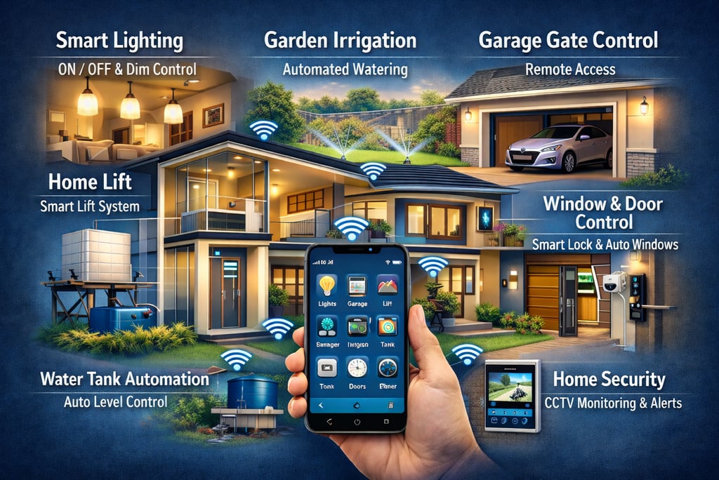 Automatic water tank level monitoring for every home to avoid overflow and water shortage.